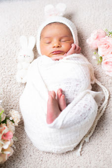 Newborn sessions are best held when the baby is 5-21 days old as this is when they are still in their sleepiest state. I provide all the props, wraps, bonnets, floors, accessories, etc. Everything in my home studio is clean and sanitized, I am as well fully vaccinated and safe to be around newborns.